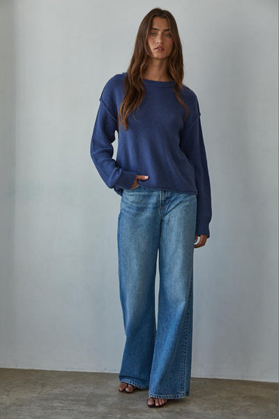 Knit Sweater Crew Neck Long Sleeve Pullover Top
